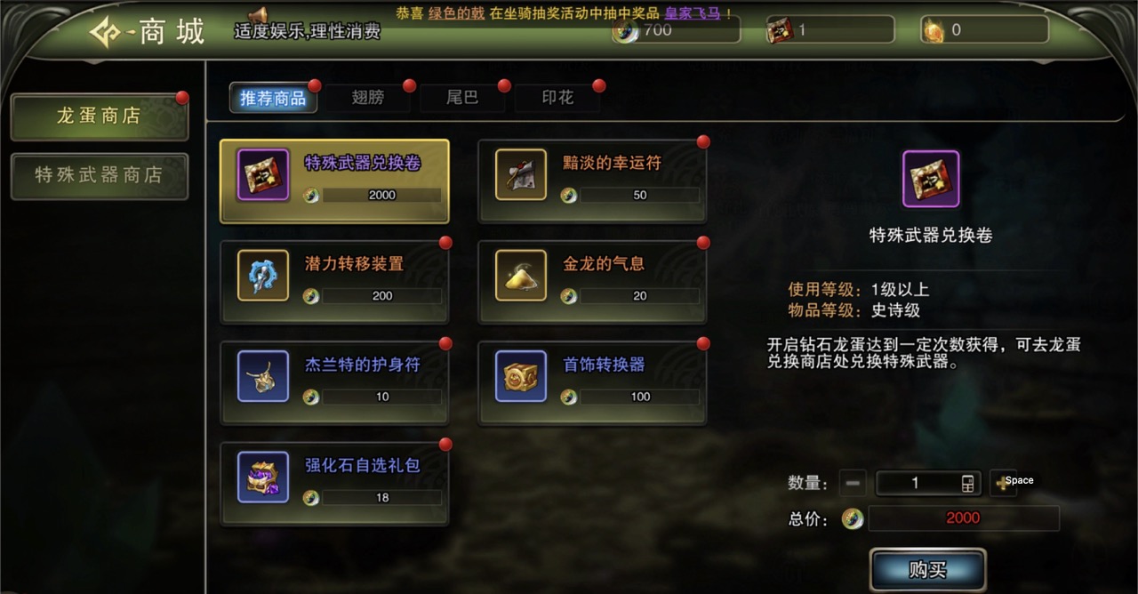 特殊武器兑换券2000龙蛋点数