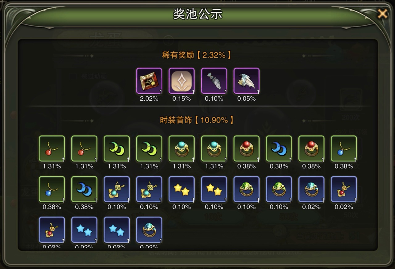 【2】龙蛋抽奖池公示_概率_物品_道具